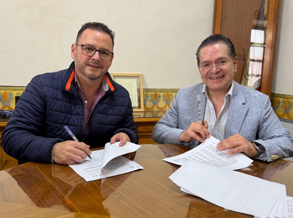 El rector de la Universidad Tecnológica de Querétaro (UTEQ), Fernando Pantoja Amaro, y el director de la Escuela de Bachilleres de la Universidad Autónoma de Querétaro (UAQ), Anghellus Medina López, firmaron un convenio de colaboración para la promoción académica, la extensión universitaria, la docencia e investigación, así como en la diversificación de la oferta educativa, con el propósito de proporcionar a las y los estudiantes mayores posibilidades de acceso a la educación superior.