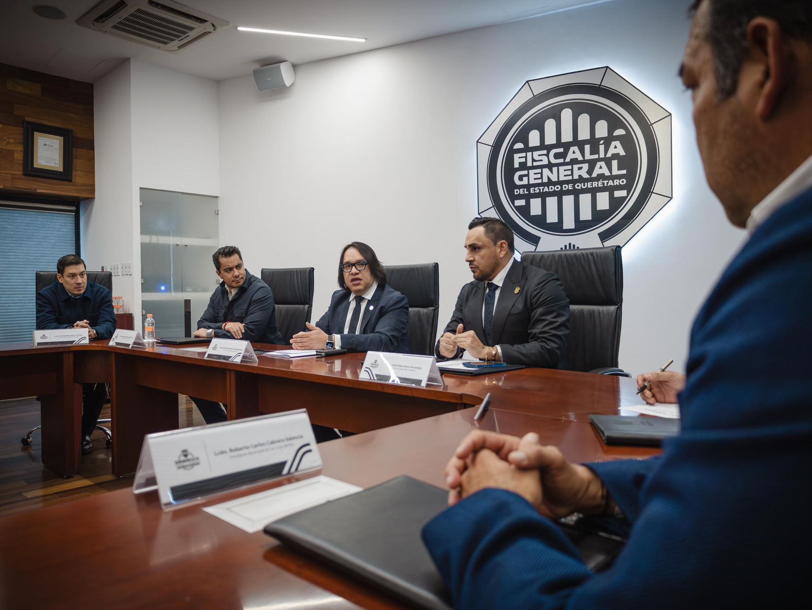 La Fiscalía General del Estado de Querétaro informa que el Fiscal General, Víctor Antonio De Jesús Hernández, acompañado del Secretario de Seguridad Ciudadana, Iovan Elías Pérez Hernández, y el Vicefiscal de Investigación Científica y Policial, Uriel Guillén Orozco, sostuvo una reunión de trabajo con presidentes municipales de Querétaro, San Juan del Río, Corregidora, Huimilpan y El Marqués, como parte del fortalecimiento de la estrategia Sinergia por Querétaro.