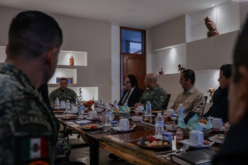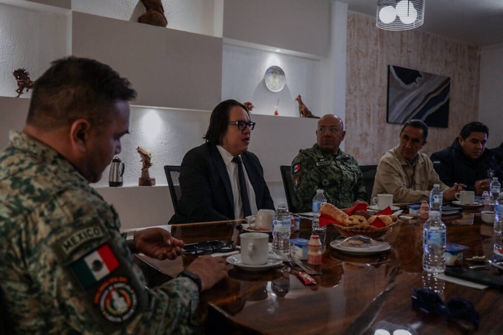 Autoridades de la Fiscalía General del Estado, SEDENA, Guardia Nacional, POES, Legislatura del Estado y Gobierno del Estado sostuvieron una reunión de trabajo en las instalaciones de la 17/a Zona Militar, con el objetivo de fortalecer las estrategias conjuntas de seguridad y procuración de justicia en la entidad.