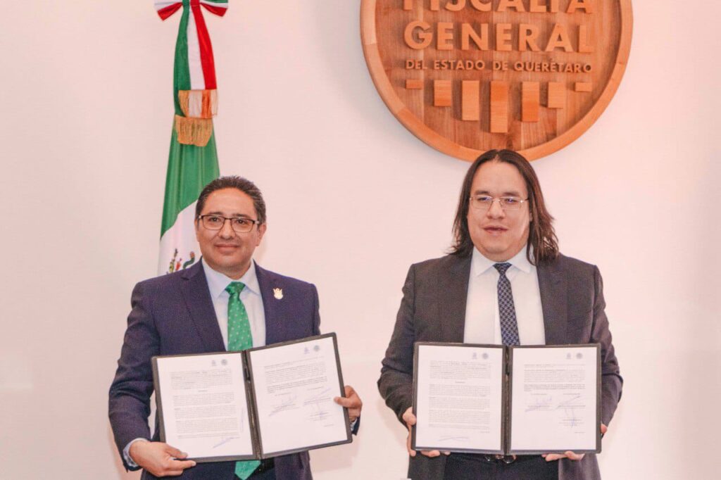 La Fiscalía General del Estado de Querétaro y la Contraloría del Estado de Querétaro celebraron la firma de un Convenio de Colaboración que facilitará el cumplimiento normativo en materia de declaraciones patrimoniales y de intereses de las personas servidoras públicas de este organismo constitucional autónomo.