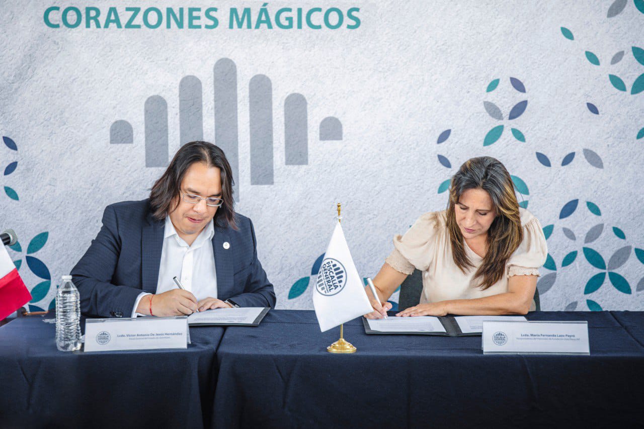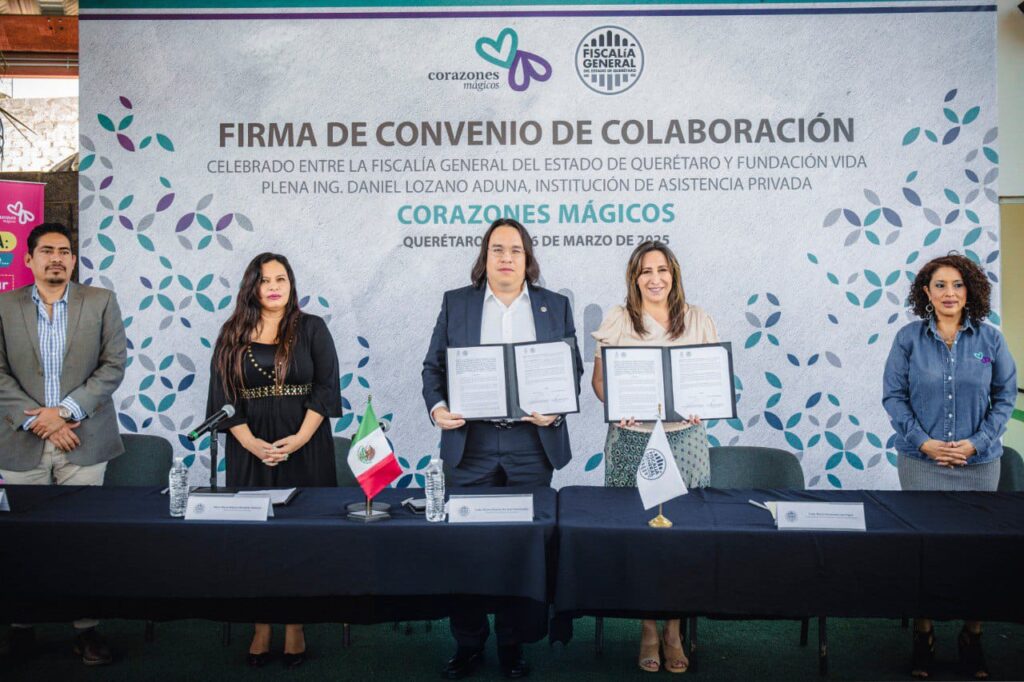La Fiscalía General del Estado de Querétaro y la Fundación Vida Plena Ing. Daniel Lozano Aduna, I.A.P. «Corazones Mágicos» unen esfuerzos mediante la firma de un convenio de colaboración orientado a fortalecer la protección de los derechos de niñas, niños y adolescentes víctimas de violencia sexual y otras formas de maltrato.