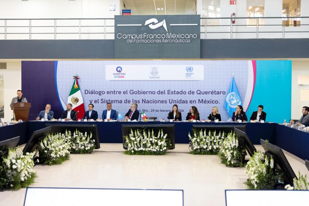 El titular del Poder Ejecutivo estatal, Mauricio Kuri González, y el coordinador residente de las Naciones Unidas en México, Peter Grohmann, encabezaron en la Universidad Aeronáutica en Querétaro (UNAQ) el Diálogo entre el Gobierno del Estado y el Sistema de la ONU, evento en el que también se presentó el Informe Subnacional Voluntario que acredita el compromiso de la entidad con la Agenda 2030.