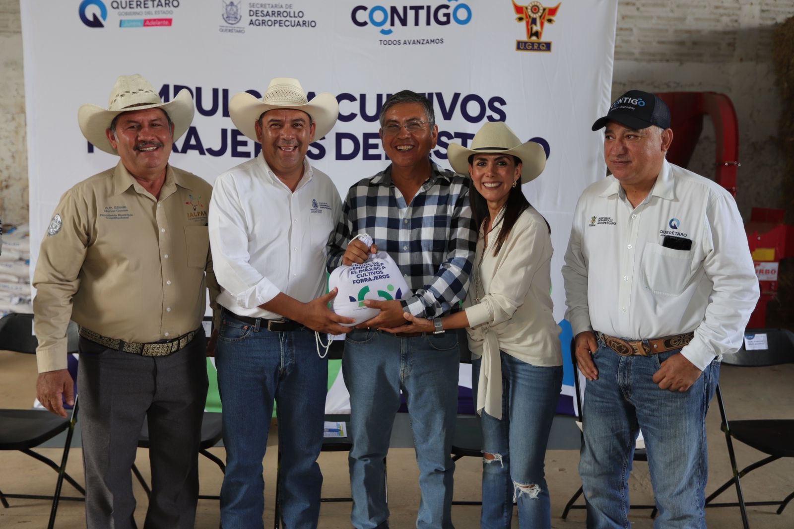 El secretario de Desarrollo Agropecuario, Rosendo Anaya, encabezó la entrega de semilla del Programa Impulso a Cultivos Forrajeros, en los municipios de Arroyo Seco, Jalpan de Serra, Landa de Matamoros y Pinal de Amoles en beneficio de 385 productores de la región serrana, como parte de la dispersión de 500 toneladas de semilla de garbanzo y avena en el estado, con una inversión de 10 millones de pesos.