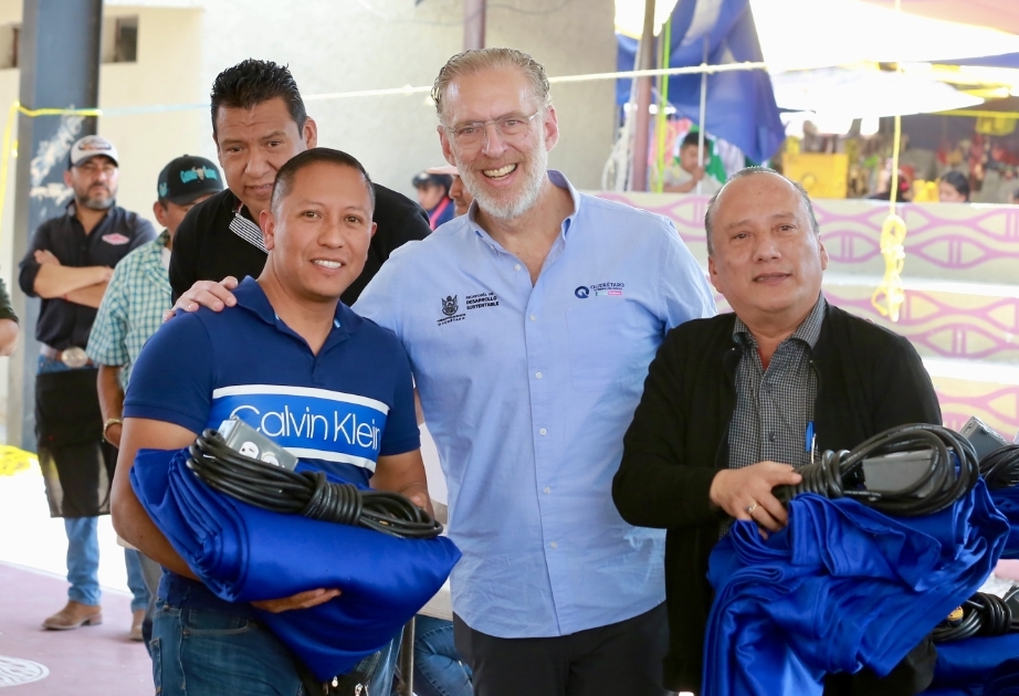 Con el objetivo de fortalecer las condiciones laborales de los comerciantes del tianguis Jade de Tequisquiapan, el titular de Desarrollo Sustentable (SEDESU), Marco Antonio Del Prete Tercero, encabezó la entrega de kits de lonas y extensiones eléctricas a 100 integrantes de la agrupación.