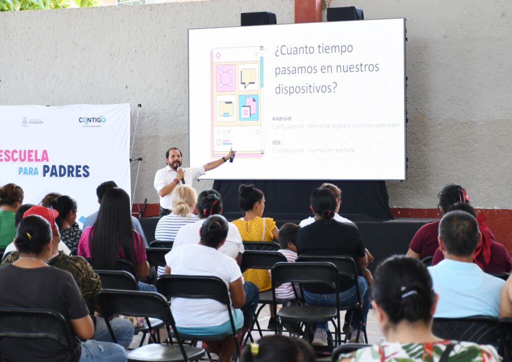 Con el objetivo de seguir fortaleciendo el tejido social desde el núcleo familiar, esta mañana se realizó la conferencia “Desconectarse para Conectarse”, impartida por el Psic. Adrián Rangel Juárez, como parte del programa Escuela para Padres.