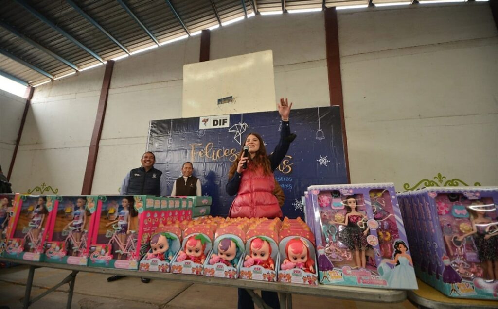 En un ambiente familiar, de unión y alegría, la presidenta del Sistema Municipal para el Desarrollo Integral de la Familia (DIF), Georgina Sánchez Barrios, y el presidente municipal de San Juan del Río, Roberto Cabrera Valencia, entregaron aguinaldos, cobijas y juguetes a mil 343 habitantes de las comunidades de Palmillas y Paso de Mata, donde también se entregaron 100 despensas a personas adultas mayores.