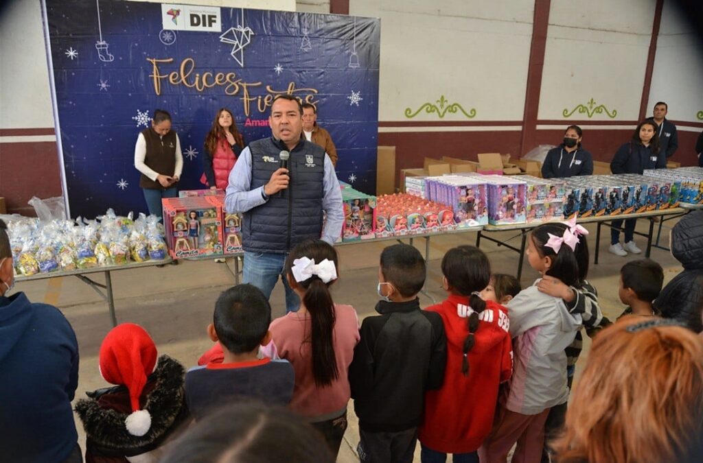 - El personal de DIF Municipal entregó cobijas, aguinaldos y juguetes en beneficio de mil 343 personas, además de 100 despensas a adultos mayores de ambas comunidades.