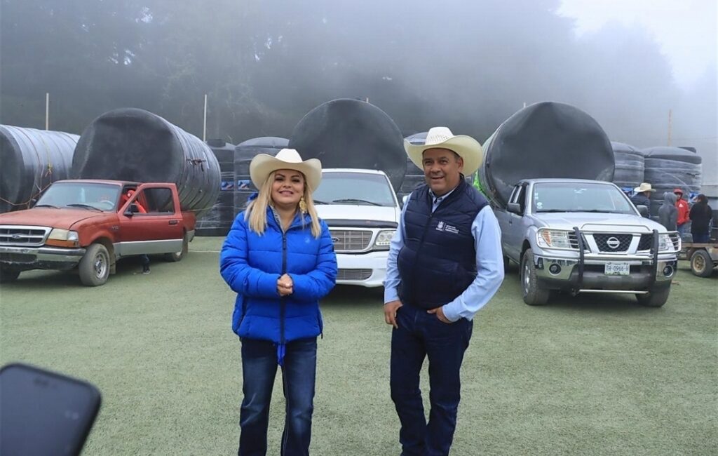 Los apoyos entregados incluyen materiales esenciales para fortalecer la producción y mejorar las condiciones de trabajo: alambres de púas, láminas galvanizadas, mallas borregueras, postes ganaderos, mangueras, tanques de geomembrana y tinacos de diversas capacidades (1,100, 2,500 5,000 litros).