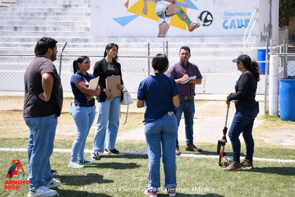 Atendiendo la visión del Presidente Municipal, Lic. Fernando Sánchez Gil, de fortalecer el deporte en Arroyo Seco, la Coordinación de Deporte y Recreación de Arroyo Seco, junto con la Dirección de Obras Públicas, estuvo presente con el personal del Instituto del Deporte y la Recreación del Estado de Querétaro (INDEREQ) en la evaluación de los proyectos de rehabilitación en la Unidad Deportiva Bicentenario.