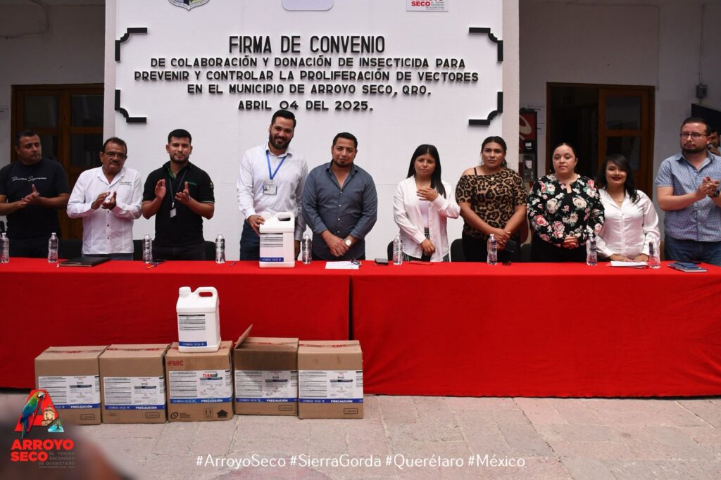 Hoy, el Presidente Municipal de Arroyo Seco, Lic. Fernando Sánchez Gil, encabezó la “Firma de Convenio de Colaboración y Donación de Insecticida para Prevenir y Controlar la Proliferación de Vectores en el Municipio de Arroyo Seco, Qro”.