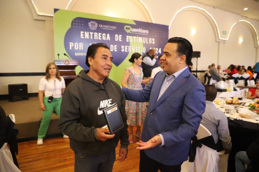 El Presidente Municipal, Luis Nava, reconoció a los trabajadores que cumplieron 10, 15, 20, 25, 30, 35 y hasta 40 años al servicio del municipio de Querétaro, y de quienes destacó su compromiso labor diaria para que las obras, programas y acciones procuren una mejor calidad de vida para todas las familias en la ciudad que queremos.