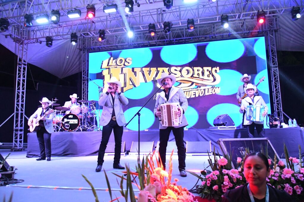 El programa artístico contó con la presentación de Los del Chepa y el reconocido grupo Los Invasores de Nuevo León, quienes lograron encender el ánimo del público con sus interpretaciones, haciendo cantar y bailar a las y los asistentes.