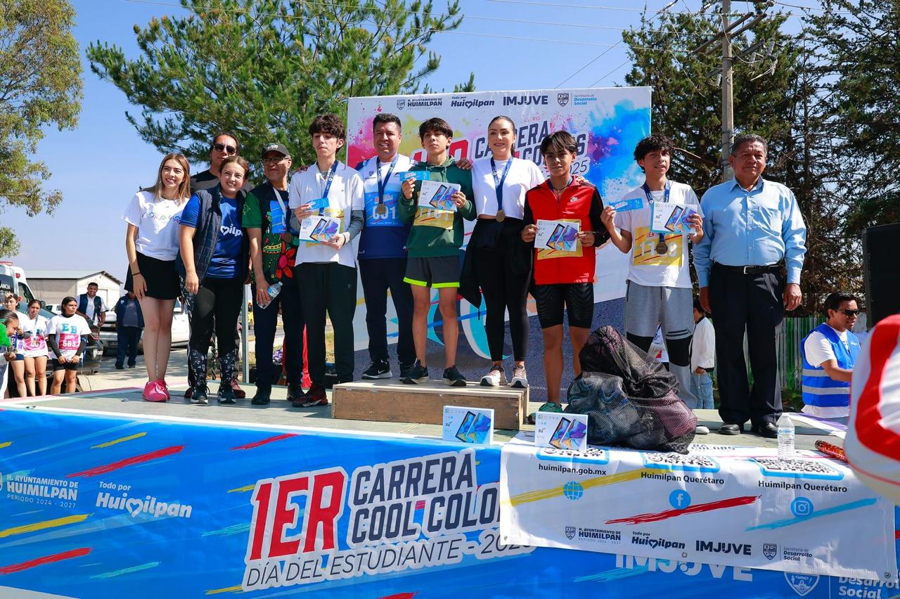 Con una destacada participación, la primera edición de la “Carrera Cool Colors” se celebró con gran entusiasmo el pasado sábado 20 de mayo en Huimilpan, congregando a más de 800 jóvenes atletas de entre 15 y 18 años. La energía y el espíritu deportivo llenaron las calles, con participantes provenientes del CECYTEQ, el COBAQ y la UAQ Campus Huimilpan.