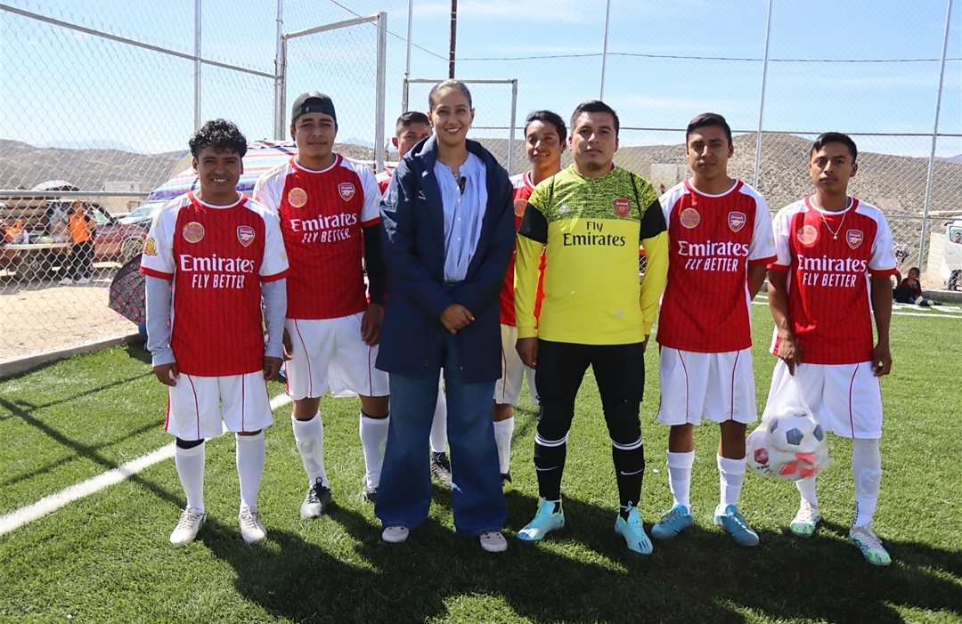 “Juntos metimos un golazo con esta nueva cancha, un espacio que, con más de cinco millones de pesos invertidos, contribuye a crear, mejorar y recuperar instalaciones deportivas a favor de las familias de la región” enfatizó Iridia Salazar.