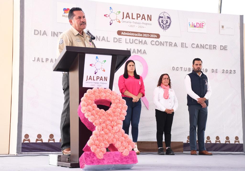 Este fue el mensaje que emitió el Presidente Municipal Efraín Muñoz Cosme el día de hoy, durante su participación en el evento realizado en el jardín principal de Jalpan de Serra; con motivo de la Cconmemoración del “Día Internacional de la Lucha contra el Cáncer de Mama”.