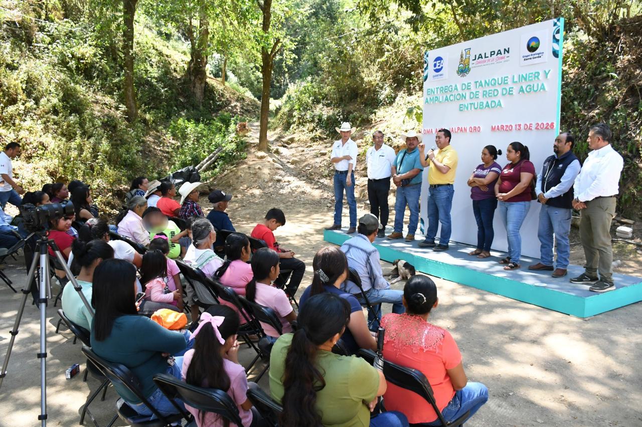 Asimismo, en la comunidad de Loma Alta se realizó la entrega de un tanque tipo liner con capacidad de 75 mil litros, el cual fue adquirido mediante la coordinación entre el Grupo Ecológico, la Comisión Estatal de Aguas (CEA) y el Municipio, con el objetivo de fortalecer el almacenamiento y la distribución de agua en la localidad. 💧