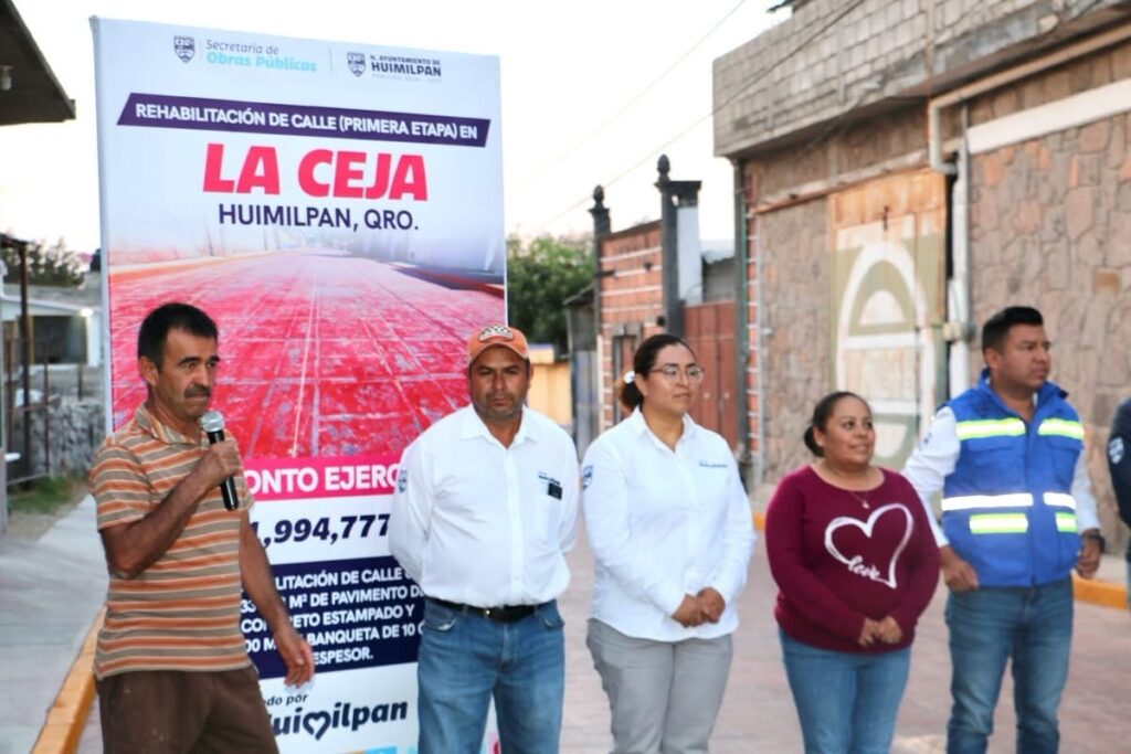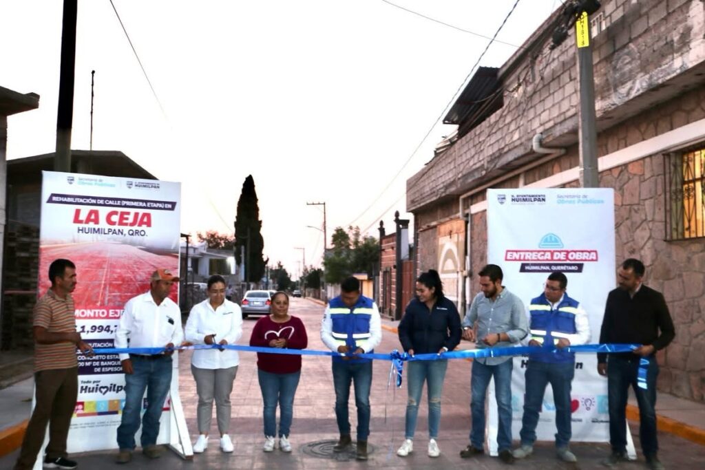 El Presidente Municipal de Huimilpan, Jairo Morales, realizó la entrega oficial de la obra en la calle San Luis Montañés, en la comunidad de La Ceja.