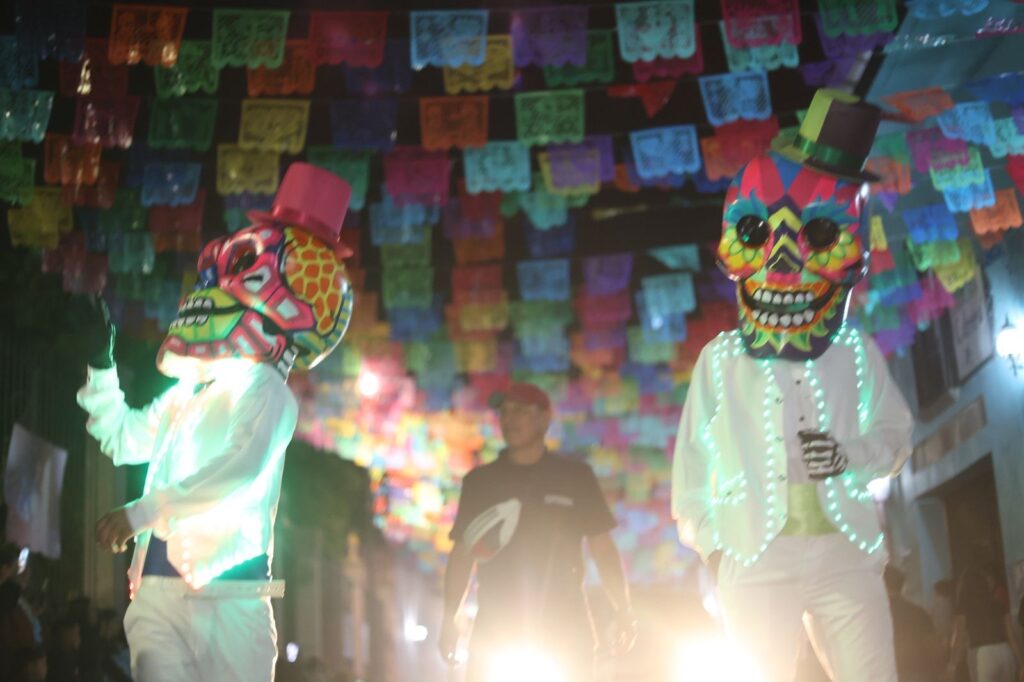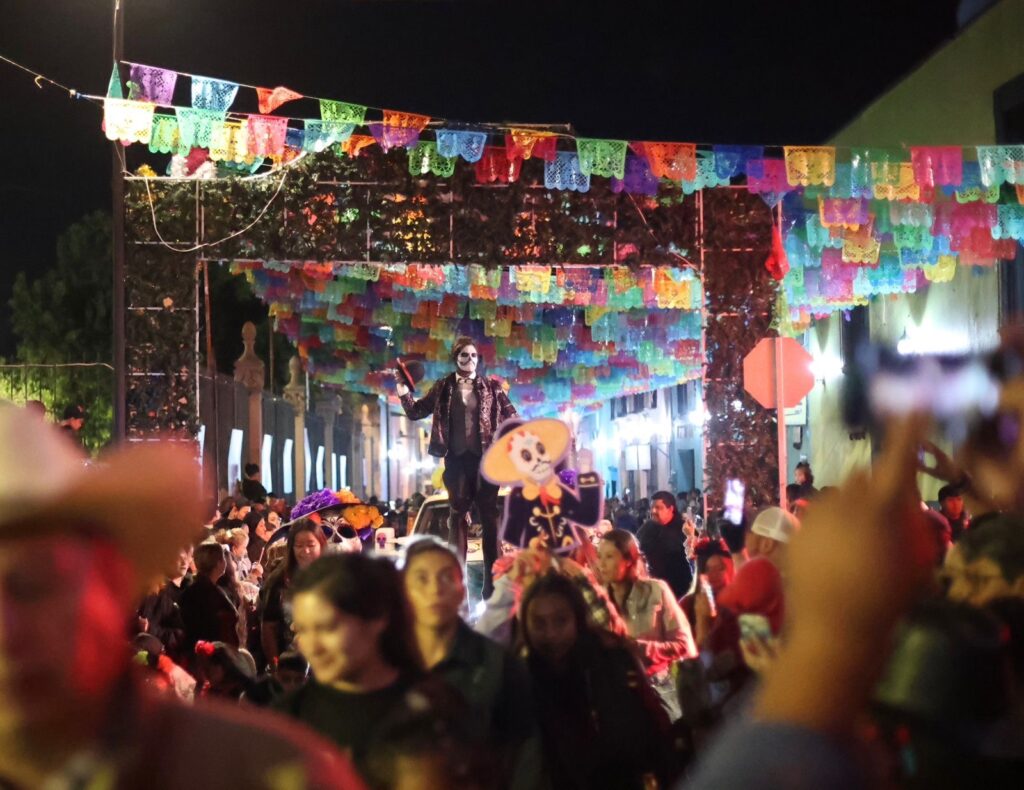 Durante el evento participaron carros alegóricos, instituciones educativas, dependencias municipales y grupos ciudadanos, quienes con creatividad y entusiasmo dieron vida a representaciones alusivas a nuestras tradiciones y personajes típicos del Día de Muertos.