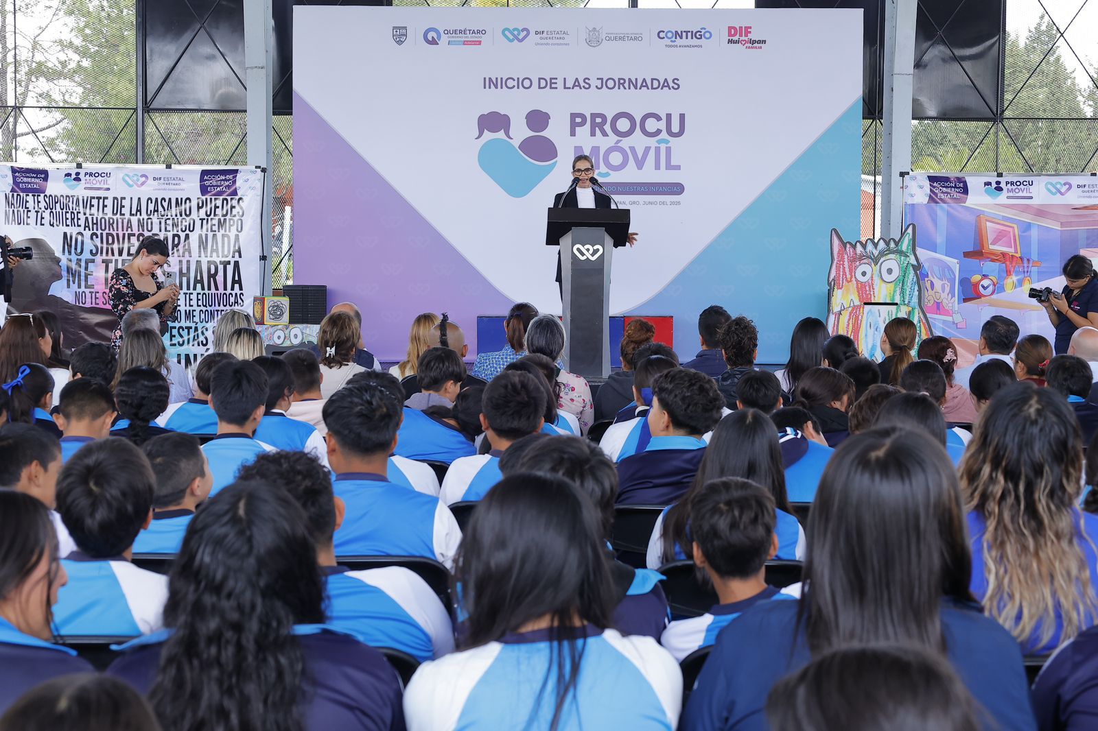 Bajo la anfitrionía del presidente Jairo Morales y la presidenta Honoraria Ana Karen de León Servín, se llevó a cabo el inicio de actividades en la Secundaria General Tec. 8 Jesús Romero Flores, con la presencia del Procurador Estatal Lic. Manuel Hernández, Secretarios de Gobierno del Estado y autoridades municipales, se presentó este proyecto que pretende trabajar la salud mental de niñas, niños y adolescentes a través de talleres, puestas en escena y canalizaciones a diversas instituciones, se trabaja con esta población y a la par llevan a cabo escuela para padres, para trabajar de manera integral con las familias.