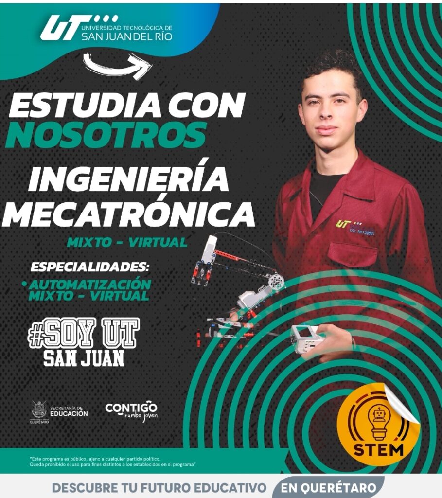 Con la implementación de su nuevo modelo educativo, la Universidad Tecnológica de San Juan del Río aperturó la Ingeniería Mecatrónica con un plan de estudios mixto virtual dirigido a profesionistas y empleados del sector productivo que desee profesionalizar sus conocimientos en esta área. El registro para el examen de admisión ya se encuetra abierto y estará disponible hasta el 14 de marzo a través de la página www.utsjr.edu.mx.