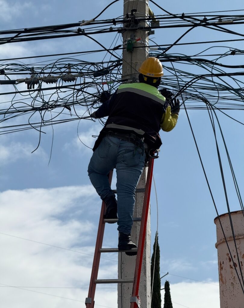 A la fecha, se han realizado 6 jornadas de retiro cableado en desuso en: Prol. Tecnológico, Av. Tláloc, Av. Luis Pasteur Sur, Calz. de los Arcos, Av. Hércules y Av. Sombrerete; sobre un total de 4.5 kilómetros de vialidad. Este esfuerzo representa un avance del 20 por ciento de la meta establecida para 2026, la cual es de 26.5 toneladas de cableado retirado al término del año.