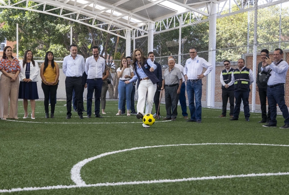 Ante la comunidad escolar y tras resaltar que con esta inyección de capital la institución educativa se convierte en la que mayor apoyo y recursos ha recibido gracias a la participación del personal docente y los padres de familia, el presidente municipal de Querétaro, Felifer Macías Olvera, destacó que la infraestructura complementaria del municipio consistió en la edificación de una cancha de futbol 5, con 408 metros cuadrados de pasto sintético, una techumbre, cercado, red perimetral y rehabilitación de barda.