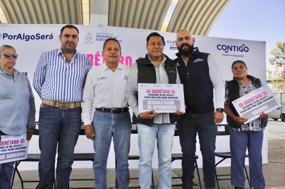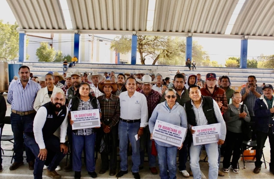 El secretario técnico de la Secretaría de Desarrollo Agropecuario, José González, abanderó la entrega de apoyos en el municipio de San Juan del Río, en beneficio de 136 productores del sector agroalimentario, en el marco del programa Apoyo al Campo Queretano.