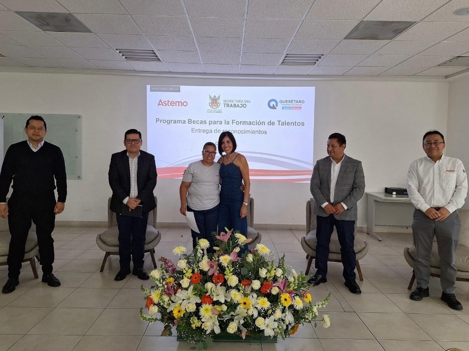 La secretaria del Trabajo, Liliana San Martín Castillo, encabezó la entrega de reconocimientos del programa Becas para la formación de talento, en la empresa Astemo México, ubicada en el Parque Industrial Querétaro, en donde se capacitaron 110 personas como Operadores de frenos y suspensiones, para ser incorporados al mercado laboral formal, como parte del compromiso de la Dependencia por impulsar la formación de perfiles especializados que fortalezcan la competitividad laboral en el estado.