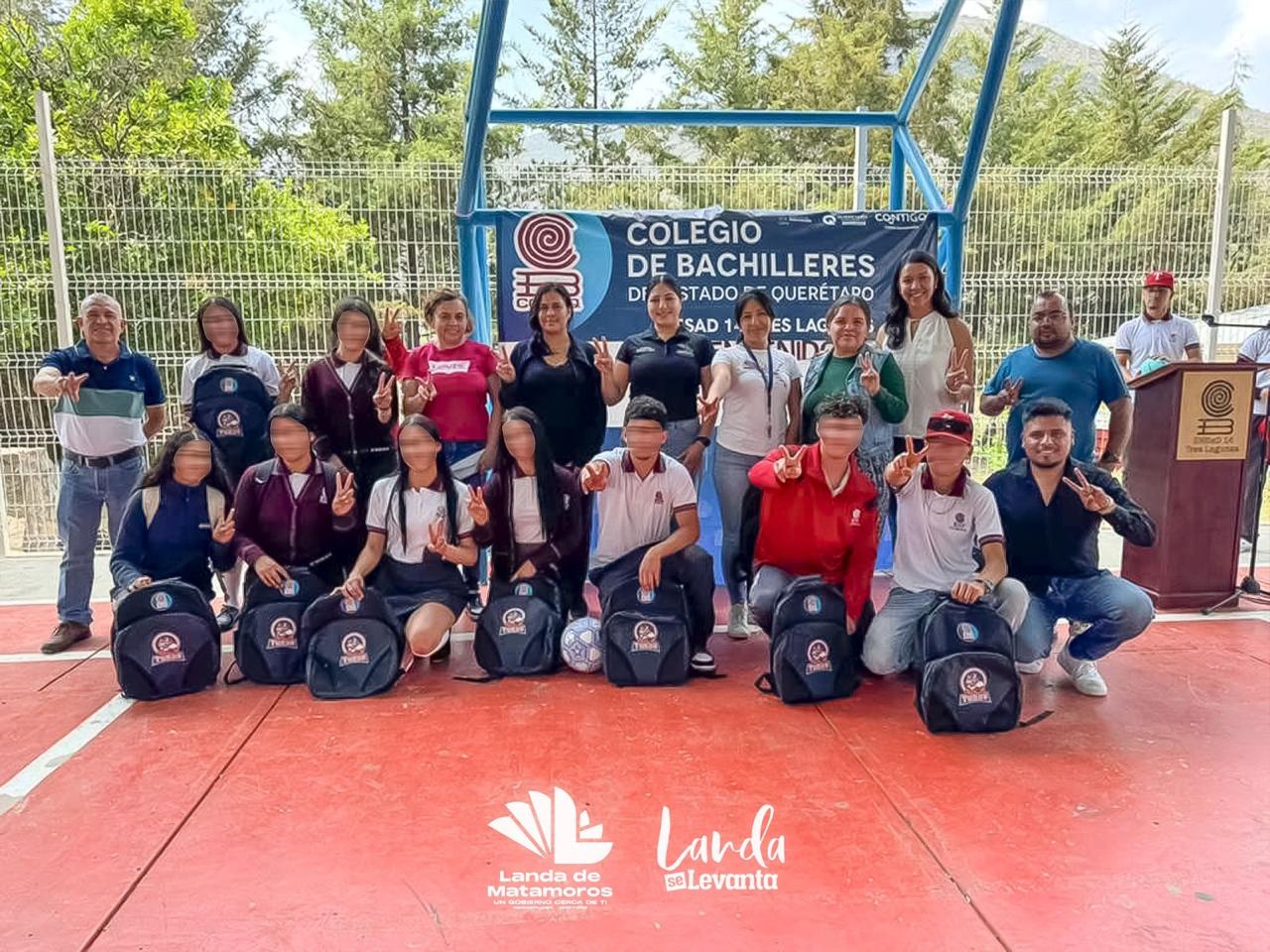 Como parte del compromiso de fortalecer el deporte y generar oportunidades para la juventud del municipio, la Administración Municipal que encabeza la Presidenta Municipal, Lic. Yuni Benítez, realizó la entrega de material deportivo al COBAQ EMSAD 14 de la comunidad de Tres Lagunas.