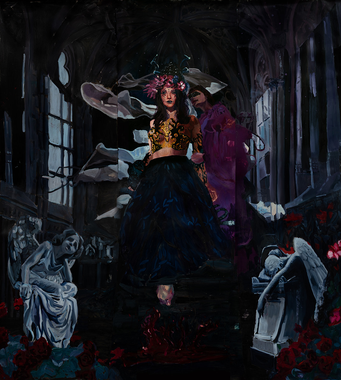 Uno de los motivos a representar en esta muestra son las diosas ancestrales de la cultura nahua a las que da una interpretación contemporánea para volver a presentar un pasado y ponerlo sobre la mesa con nuevas lecturas o ficciones.