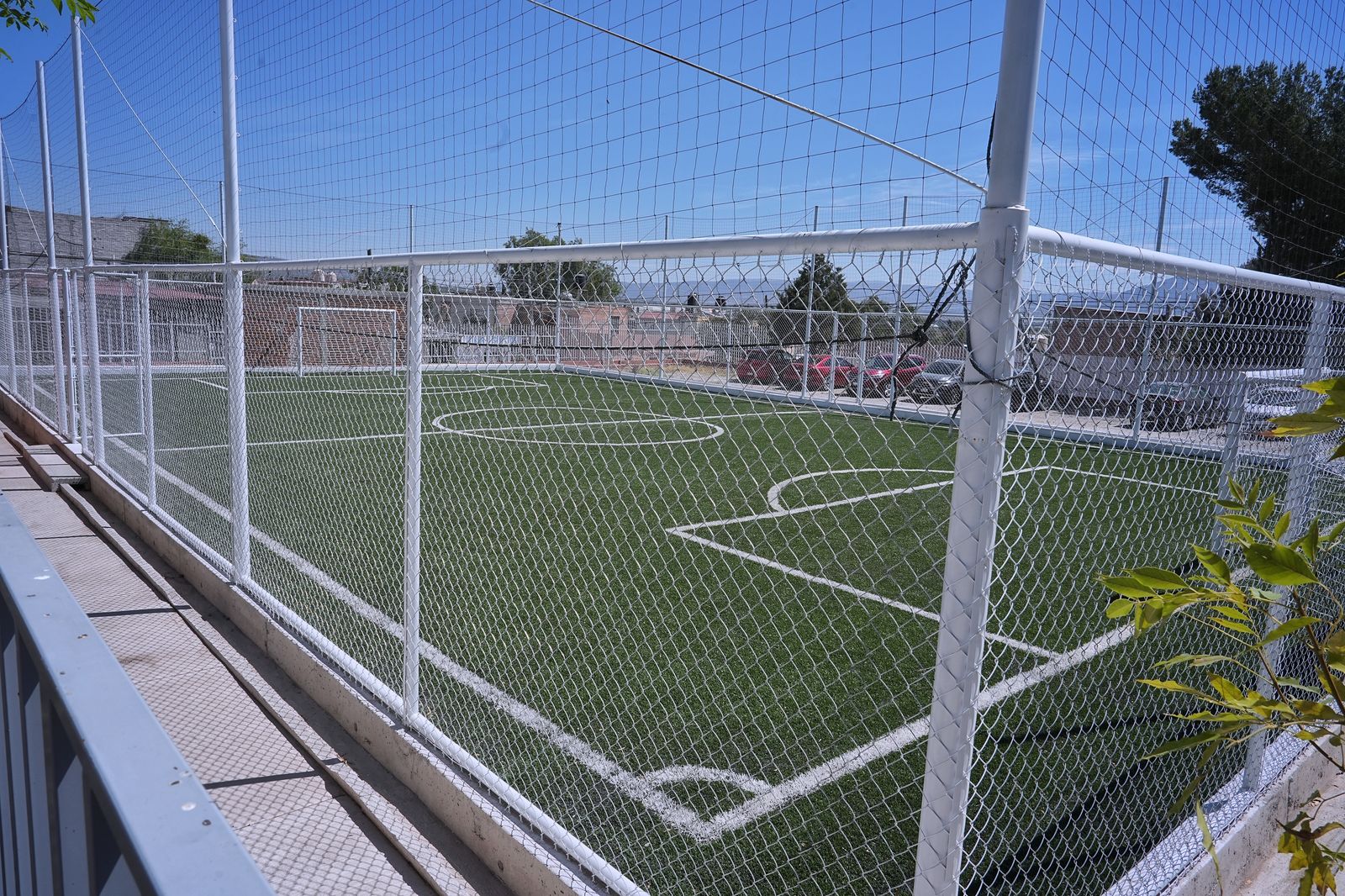 El secretario de Obra Pública, Francisco Villegas Solís, informó que los trabajos realizados incluyen: la instalación de 504 metros cuadrados de pasto sintético deportivo de polietileno y tufting de 37 milímetros de espesor, 197 metros cuadrados de malla ciclónica perimetral con 2.5 metros de altura, 92 metros de tela de nylon, dos rejas de acceso de 1 metro de ancho y dos porterías. Esta obra beneficiará directamente a 650 estudiantes de la zona.