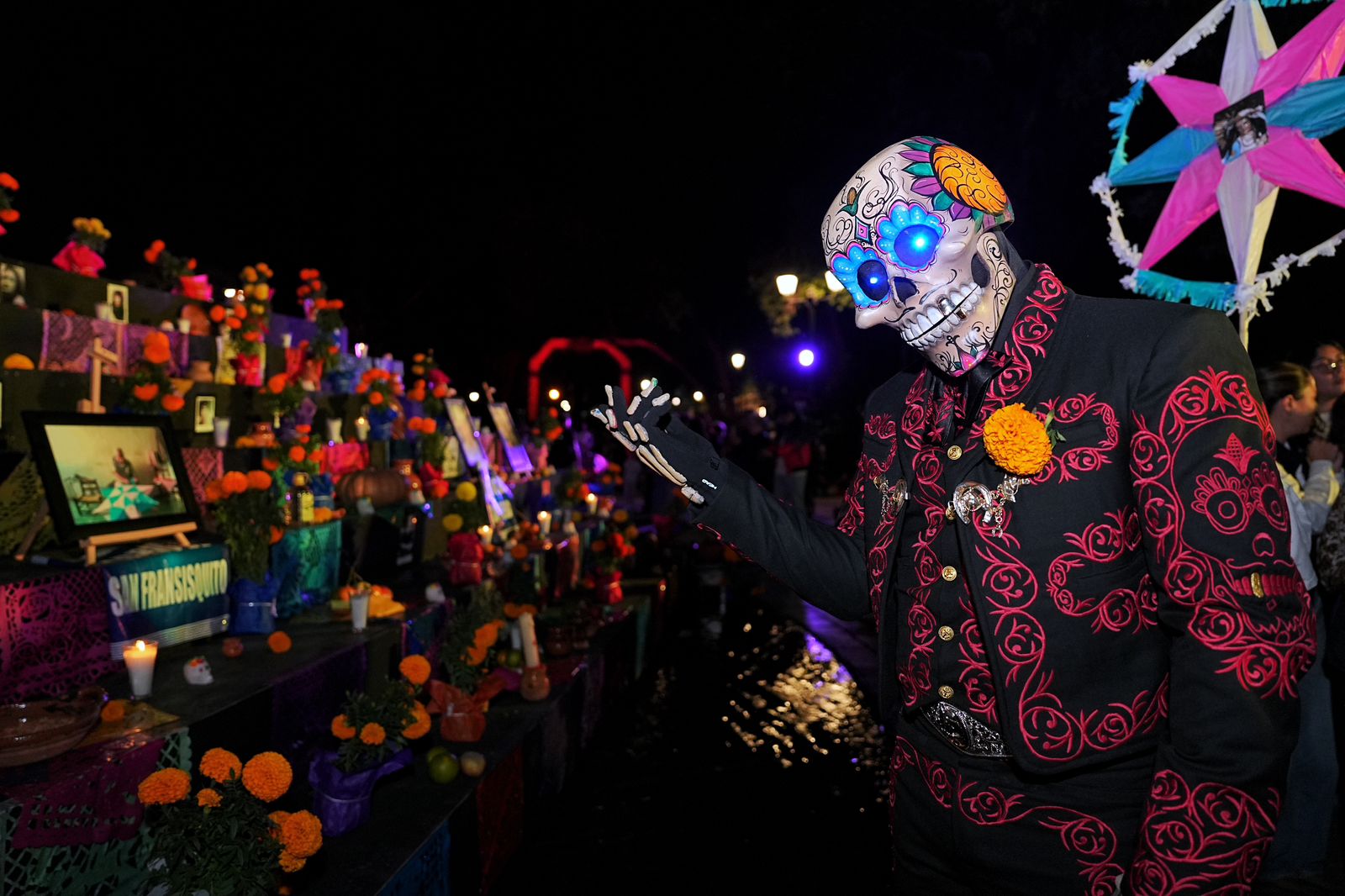 Posteriormente, el alcalde Felifer Macías asistió a la 30ª presentación del Altar de Muertos de la Secretaría de Seguridad Pública en la Delegación Centro Histórico, rindiendo homenaje a los policías caídos en cumplimiento de su deber y a quienes fallecieron por causas naturales. Más de 80 elementos de la policía municipal participaron en la elaboración del altar, que representa los cuatro cielos de la “Cosmovisión Mexica”: Tonatiuh Ilhuícatl, Tlalocan, Chichihualcuauhco y Mictlán. Durante el evento, se tributa a 13 oficiales caídos y 47 elementos que perdieron la vida por causas naturales.