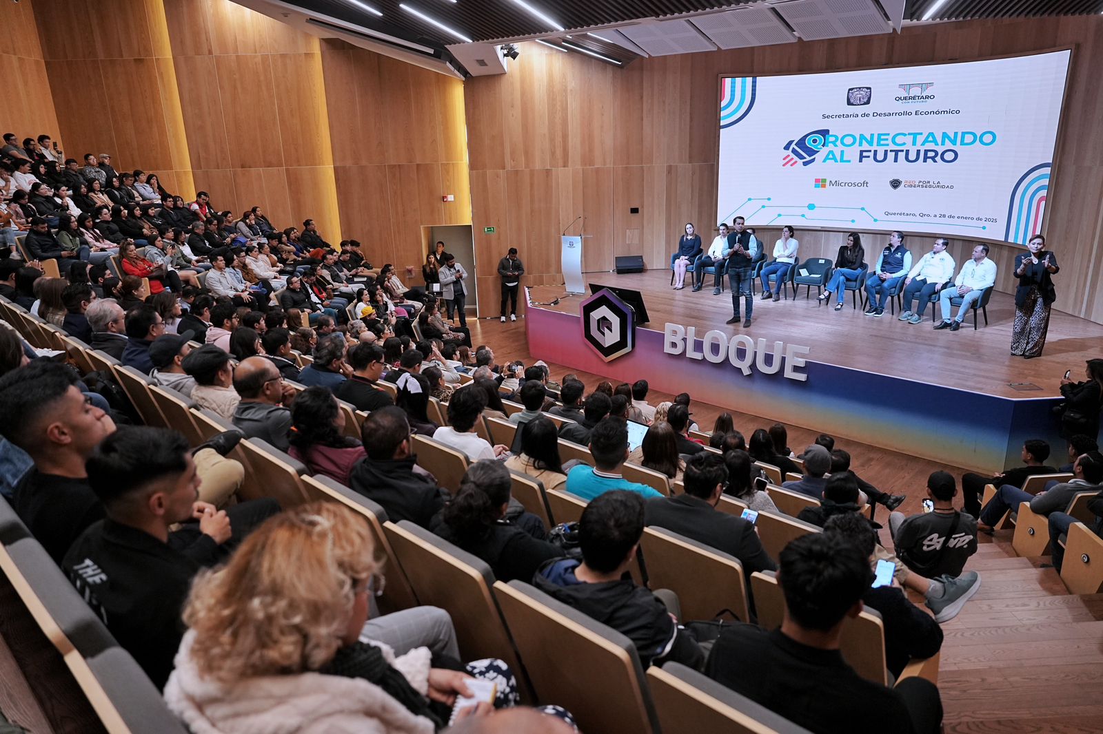 - El presidente municipal de Querétaro, Felifer Macías asistió a la Inauguración de Qronectando al Futuro, que, con el apoyo de Microsoft, se llevará a cabo mediante una serie de conferencias en temas de ciberseguridad, desarrollo de aplicaciones y transformación digital para PyMEs, entre otras, para construir un Querétaro con orden y con visión de futuro.