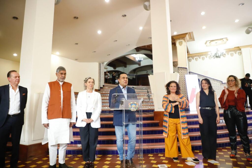 El Presidente Municipal de Querétaro, Luis Nava, en compañía de la Directora Internacional del Hay Festival, Cristina Fuentes La Roche, y de Kailash Satyarthi, Premio Nobel de la Paz de 2014, inauguró la novena edición del Hay Festival Querétaro 2024, que promueve el diálogo y el intercambio cultural e intelectual a nivel internacional.