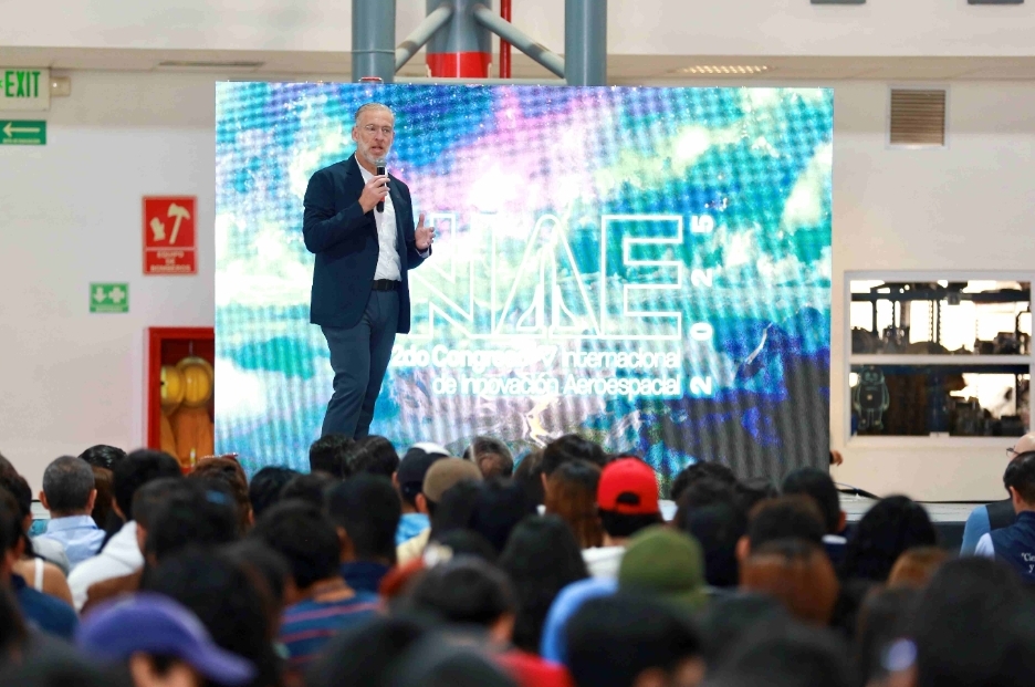 Durante su mensaje, señaló que el INAE es punto de encuentro para investigadores, emprendedores, estudiantes y líderes de la industria y del sector aeroespacial, a fin de explorar las fronteras de la tecnología, compartir ideas y colaborar en la creación de soluciones que transformen el futuro del espacio y la aeronáutica.
