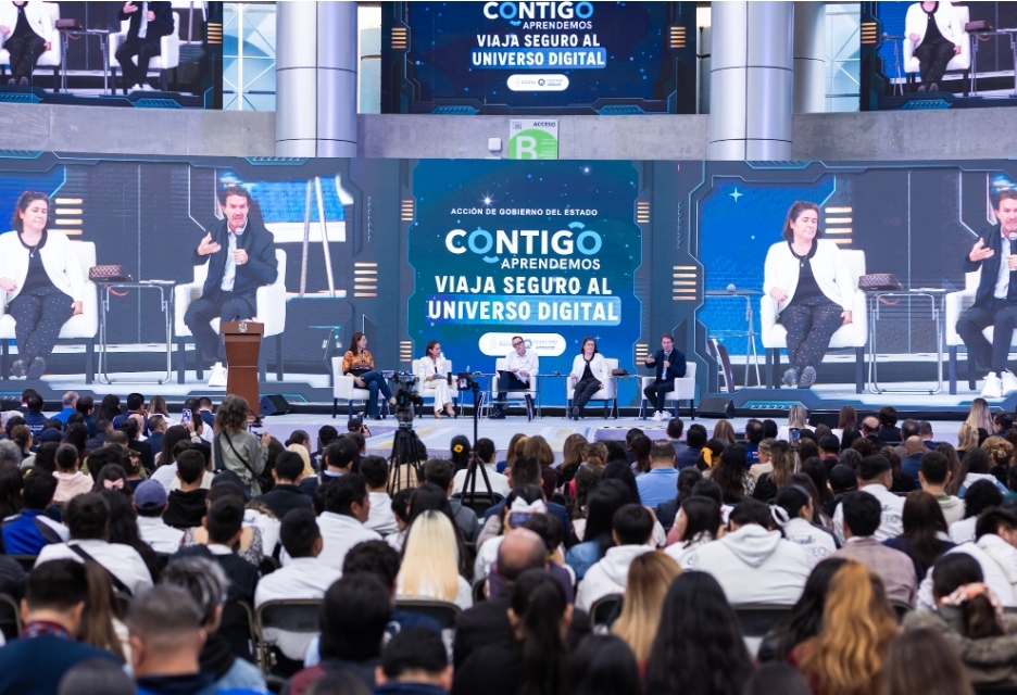 La funcionaria moderó un conversatorio con el Gobernador e invitados especiales como la economista, exsecretaria de Educación Pública y promotora de Civismo Digital, Josefina Vázquez Mota; el presidente de la Fundación Teletón, filántropo y promotor de Derechos Humanos, Fernando Chobi Landeros; y la académica investigadora internacional, especialista en Alfabetización Digital, Redes Sociales Seguras y Prevención del Cyberbullying, Marcela Momberg, para tratar distintos aspectos de las tecnologías, uso de dispositivos y responsabilidad de los padres, madres de familia y docentes.