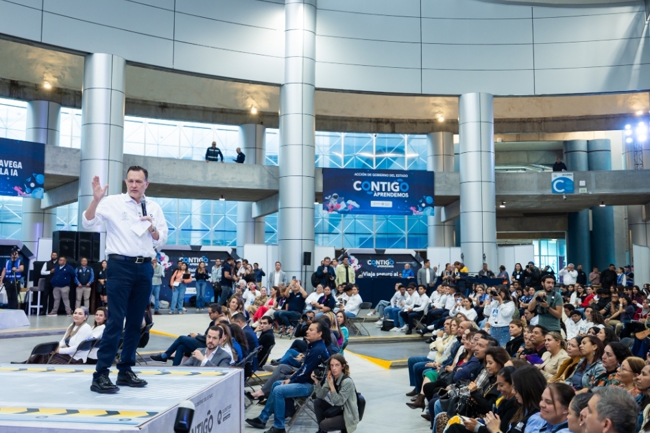 El titular del Poder Ejecutivo estatal, Mauricio Kuri González, encabezó la inauguración del evento “Contigo Aprendemos 2025”, que busca promover el uso responsable de la tecnología y la construcción de entornos digitales seguros para niñas, niños y adolescentes, a través de conferencias, talleres, presentaciones artísticas, zonas interactivas y espacios de convivencia. Durante el encuentro también se firmó el Pacto “10 por la lectura”, orientado a fomentar el gusto por los libros.