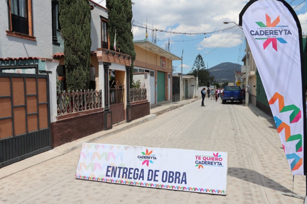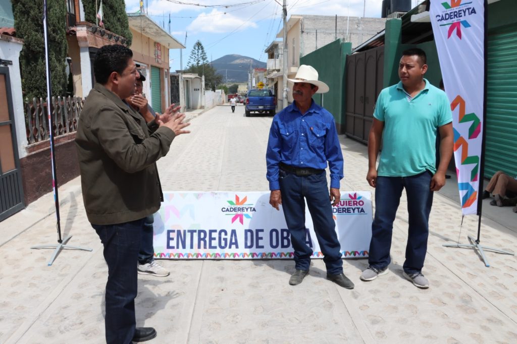 En gira de trabajo, este día el alcalde cadereytense encabezó la entrega de la construcción de pavimento de empedrado empacado en mortero en calle Clemente Orozco en La Magdalena; la construcción de pavimento de empedrado empacado en mortero en calle San Juan 1a etapa en el Barrio de San Diego; la construcción de pavimento de empedrado empacado en mortero en calle Melchor Ocampo 1a etapa, y empedrado en tepetate en calle Roble en Villa Guerrero.