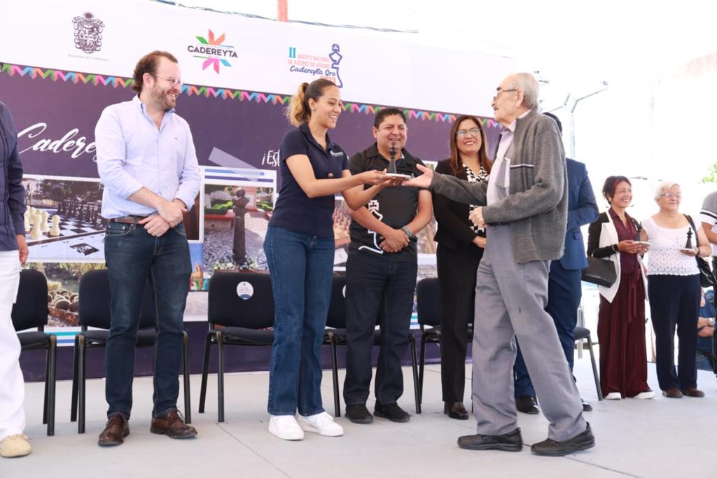 Cabe destacar que en su intervención el Dr. Mario Ramírez Barajas, Presidente de la Federación Nacional de Ajedrez(FENAMAC), entregó un reconocimiento al presidente municipal, “por su importante contribución al ajedrez a nivel nacional, siendo Cadereyta de Montes la capital Nacional de Ajedrez y colocando al municipio en el mapa de México como uno de los lugares donde puedes practicar el deporte ciencia”.