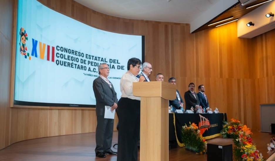 La titular de la Secretaría de Salud del estado de Querétaro (SESA), María Martina Pérez Rendón, inauguró el XVII Congreso Estatal del Colegio de Pediatras de Querétaro, encuentro que se lleva a cabo durante tres días y que tiene como propósito actualizar conocimientos para fortalecer la calidad de la atención médica en beneficio de la niñez y la adolescencia.