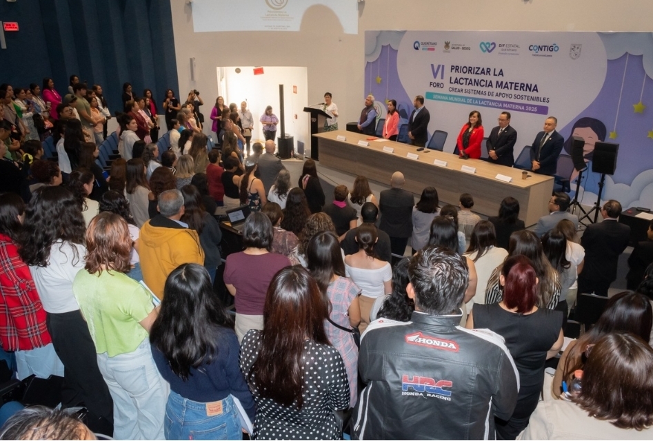 En el auditorio del Hospital General de Querétaro, la secretaria de Salud del estado, María Martina Pérez Rendón, inauguró el Sexto Foro de Lactancia Materna, que este año se desarrolla bajo el lema “Priorizar la lactancia materna: crear sistemas de apoyo sostenibles”. El evento académico reúne a 200 profesionales de la salud.