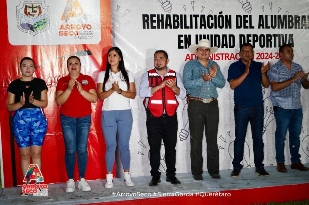 Además, comentó: “Hemos decidido invertir fuertemente en el deporte. Traemos con May las escuelas formativas de fútbol, algo histórico; las escuelas formativas de voleibol, y ya trabajamos en un proyecto de escuelas formativas de básquetbol. Hace unos días, aquí en Arroyo Seco, inauguramos ese torneo de promesas juveniles donde participan jóvenes de 14 a 16 años. Pero, ¿qué pasaba? Que ya a las 7 o 7:30 de la tarde no podían jugar porque no había luz. Hoy, en cabecera, en Purísima y en Concá, van a tener espacio suficiente para practicar deporte.”