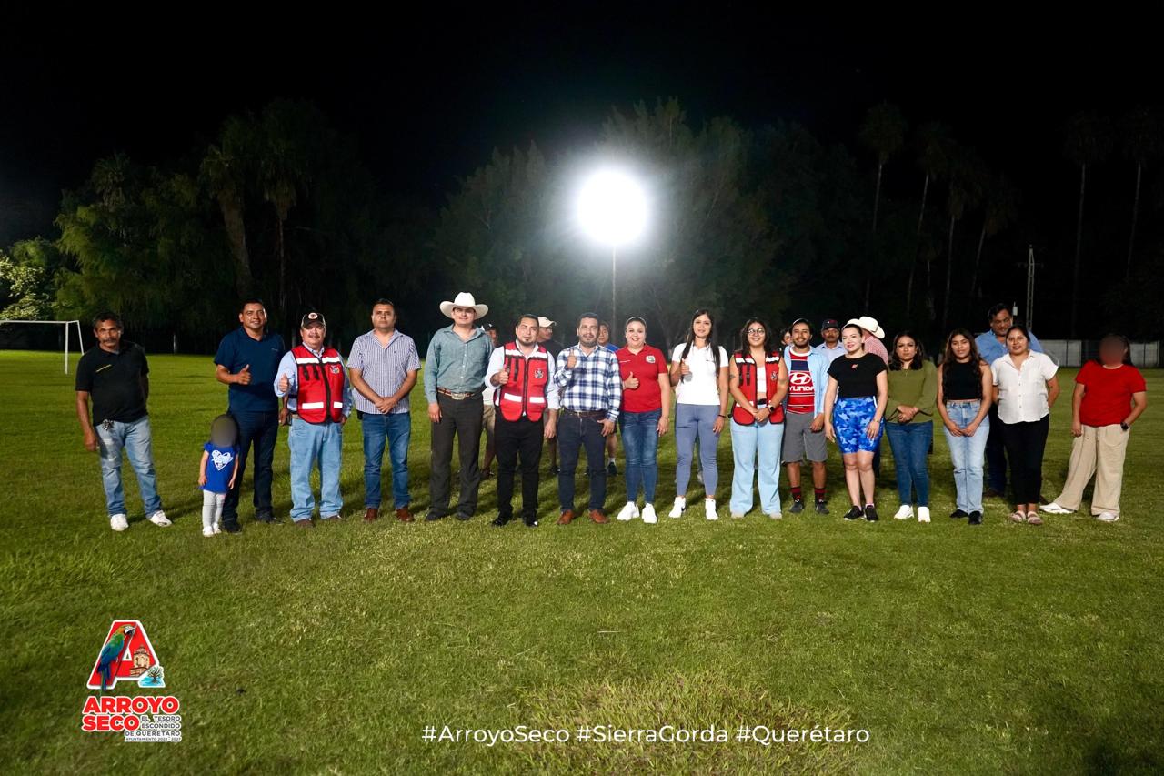 Además, comentó: “Hemos decidido invertir fuertemente en el deporte. Traemos con May las escuelas formativas de fútbol, algo histórico; las escuelas formativas de voleibol, y ya trabajamos en un proyecto de escuelas formativas de básquetbol. Hace unos días, aquí en Arroyo Seco, inauguramos ese torneo de promesas juveniles donde participan jóvenes de 14 a 16 años. Pero, ¿qué pasaba? Que ya a las 7 o 7:30 de la tarde no podían jugar porque no había luz. Hoy, en cabecera, en Purísima y en Concá, van a tener espacio suficiente para practicar deporte.”