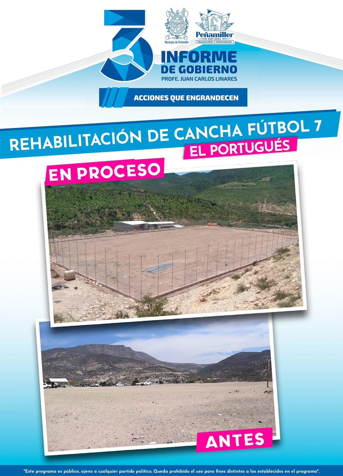 - Rehabilitación de cancha de fútbol 7 – El Portugués
