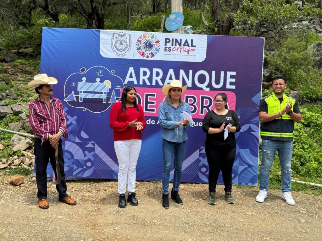 En representación de la presidenta municipal de Pinal de Amoles, Lupita Ramírez Plaza, la regidora Lizbeth Plaza Hernández, dio el banderazo de inicio a la obra de construcción de una rampa con concreto hidráulico en el camino a Las Mesas de Santa Inés, como parte de las acciones del Fondo de Aportaciones para la Infraestructura Social Municipal (FAISMUN) 2025.
