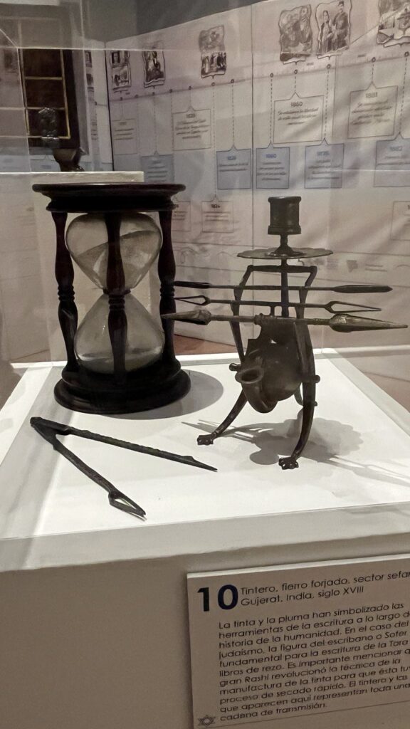 La exposición de los objetos provenientes de México e India, dos lugares con presencia sefardita de gran importancia, brinda la oportunidad de adentrarse en una de las vetas culturales y estéticas poco exploradas de la herencia histórica, fuente de expresiones de gran belleza y expresividad.