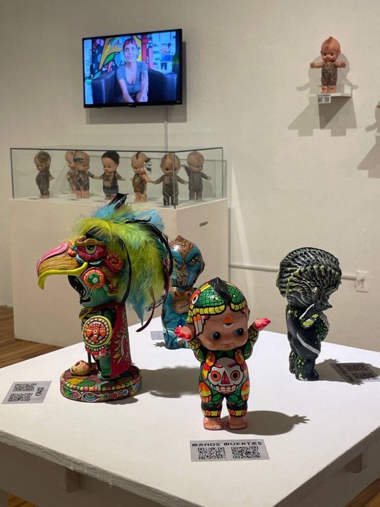 Por otro lado, en “Kewpie Tatto Toy” 110 artistas plásticos y visuales, así como ilustradores y tatuadores, dejan ver la forma en que históricamente las artes como las prácticas corporales de marcar o decorar la piel han roto con las tradiciones del pasado y se han reinventado en el presente, de tal suerte que hoy es posible categorizarlas juntas.