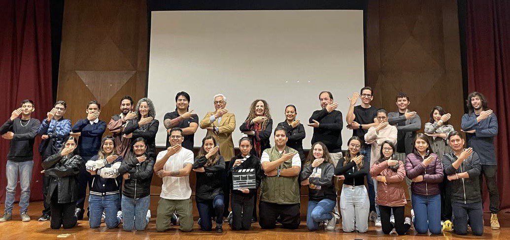El coordinador de Imagen Institucional de la Secretaría de Cultura del estado, Crisanto Frías, en representación de la titular de la dependencia, Marcela Herbert Pesquera, y la directora y productora de cine, Dora Guzmán, dieron el claquetazo del curso de cine y producción Cine Sordo, que se impartirá del 9 al 20 de octubre a personas con ese tipo de discapacidad.