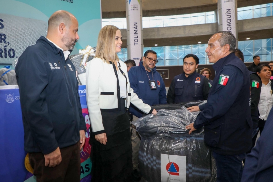 Con el objetivo de proteger del frío a la población más vulnerable de la entidad, la presidenta del Patronato del Sistema Estatal DIF, Car Herrera de Kuri, puso en marcha la Colecta Invernal 2025, en la cual recibió del secretario de Gobierno, Eric Gudiño las primeras cobijas que abrigarán a cientos de familias queretanas.
