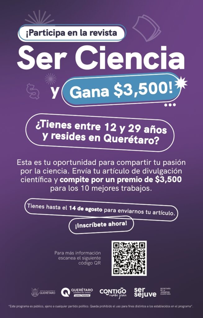 La secretaria de la Juventud, Virginia Hernández Vázquez, llamó a las y los jóvenes de entre 12 y 29 años a participar en la convocatoria para publicar artículos científicos y tecnológicos en la revista “SerCiencia”, proyecto que busca generar interés por la ciencia entre la juventud queretana.